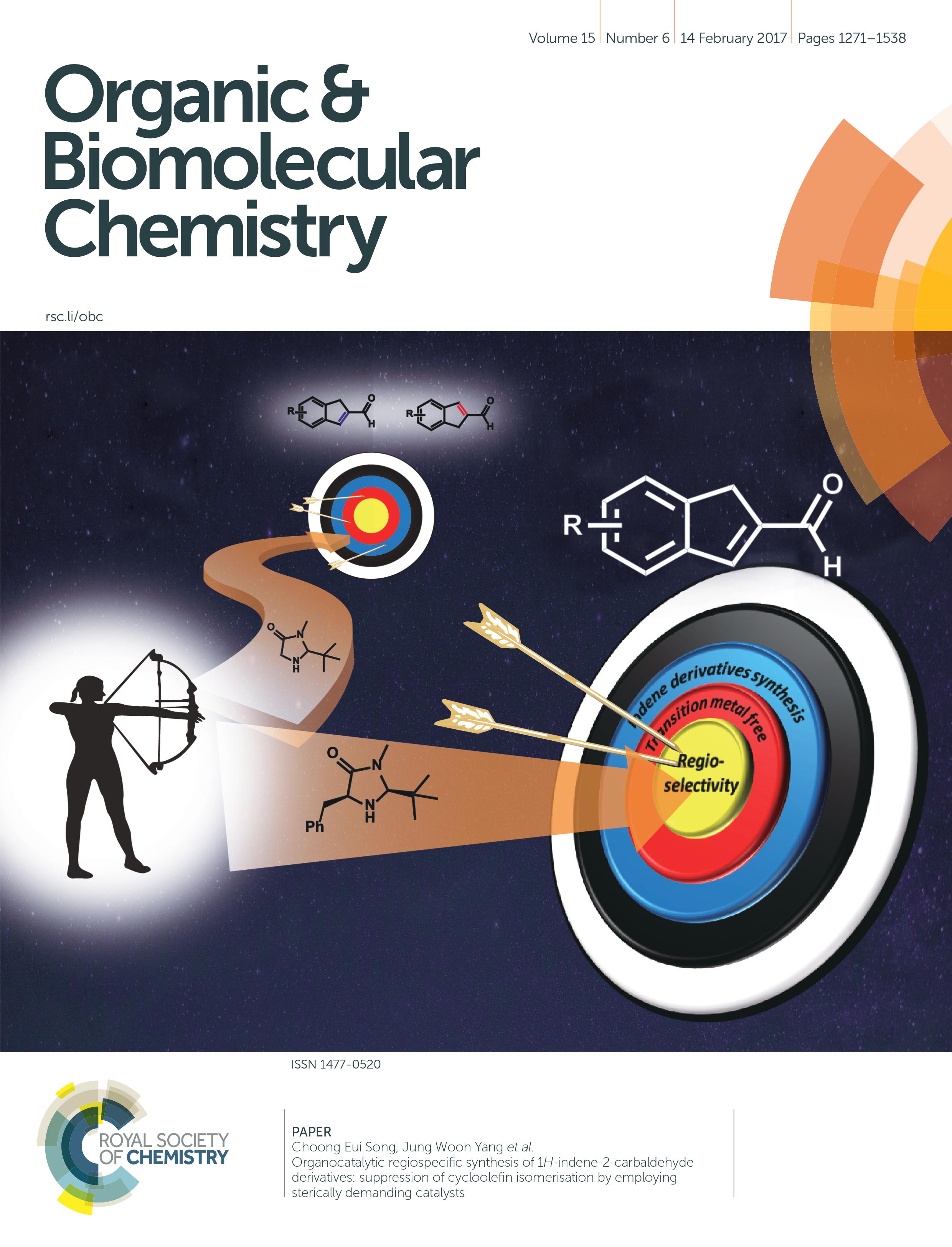 "Organocatalytic regiospecific synthesis of 1H-indene-2-carbaldehyde derivatives: suppression of cycloolefin isomerisation by employing sterically demanding catalysts", Org. Biomol. Chem. 2017, 15, 1355