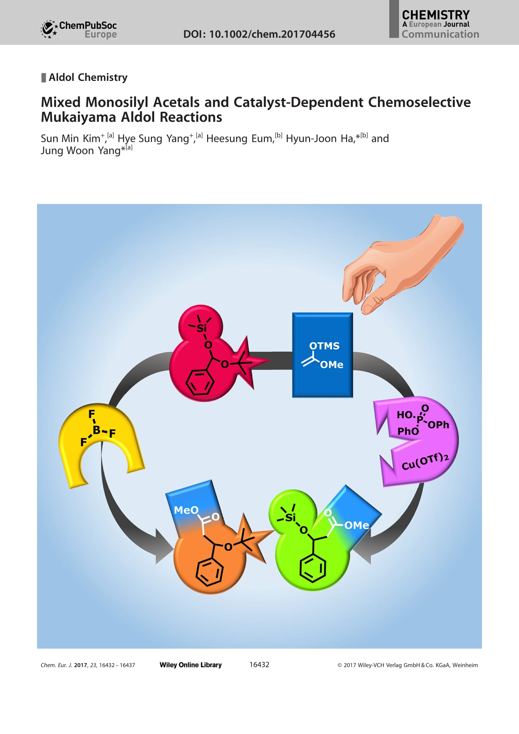 Our paper entitled “Mixed Monosilyl Acetals and Catalyst-Dependent Chemoselective Mukaiyama Aldol Reactions” has been selected as Frontispiece in Chemistry – A European Journal.