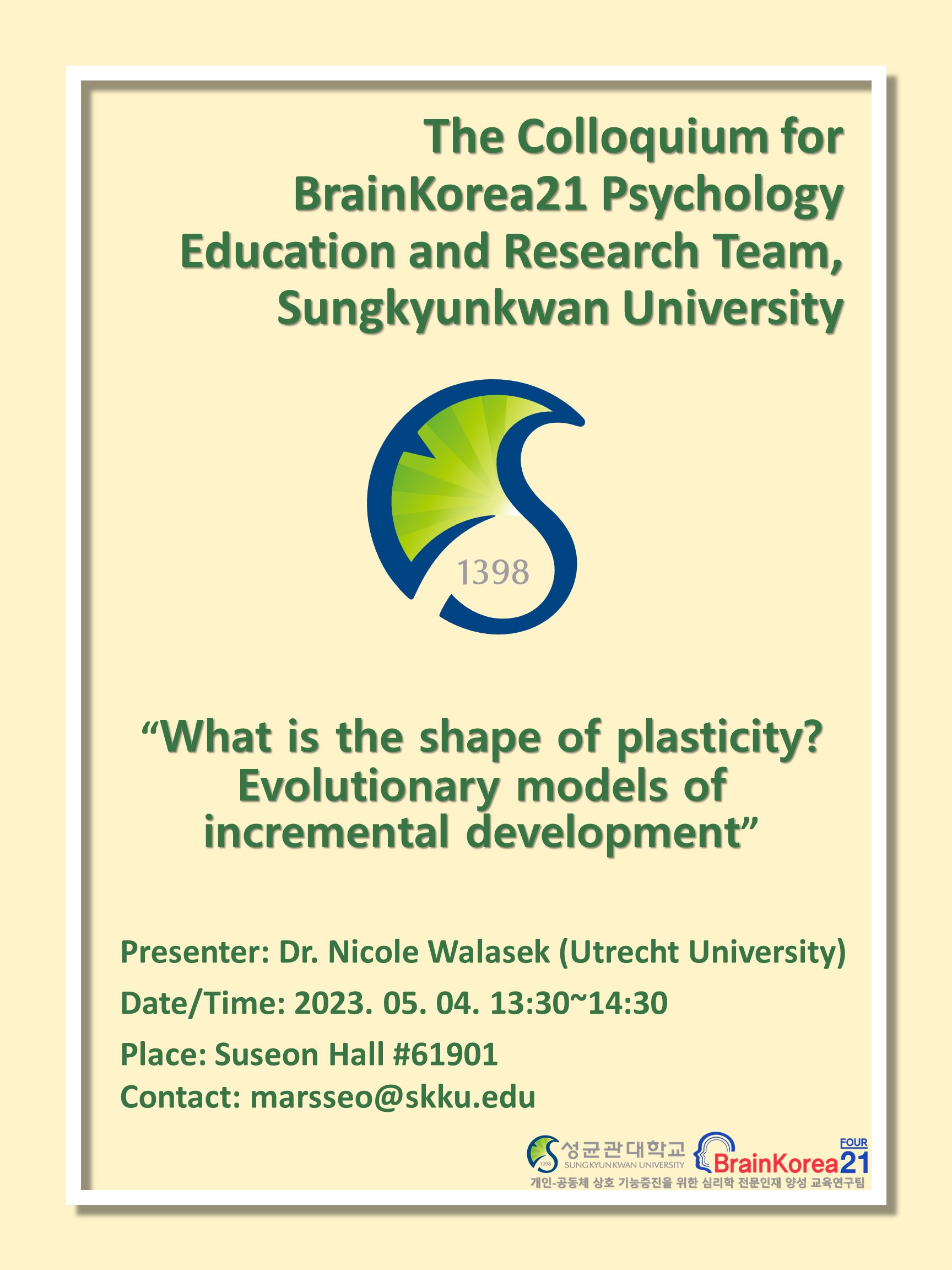 제목 | [콜로키움] (5/4) What is the shape of plasticity? Evolutionary models of incremental development | ||||